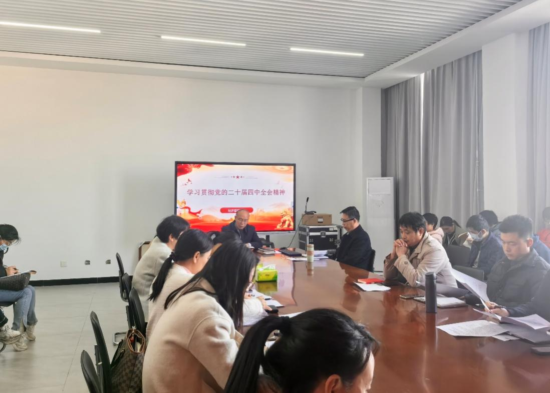 为全面落实公司关于党的二十届四中全会精神宣讲工作的统一部署,引导全体教师深入学习贯彻党的二十届四中全会精神,公司于11月27日下午在行知楼RB422会议室举办党的二十届四中全会精神专题学习会,全体教职工参加会议。
