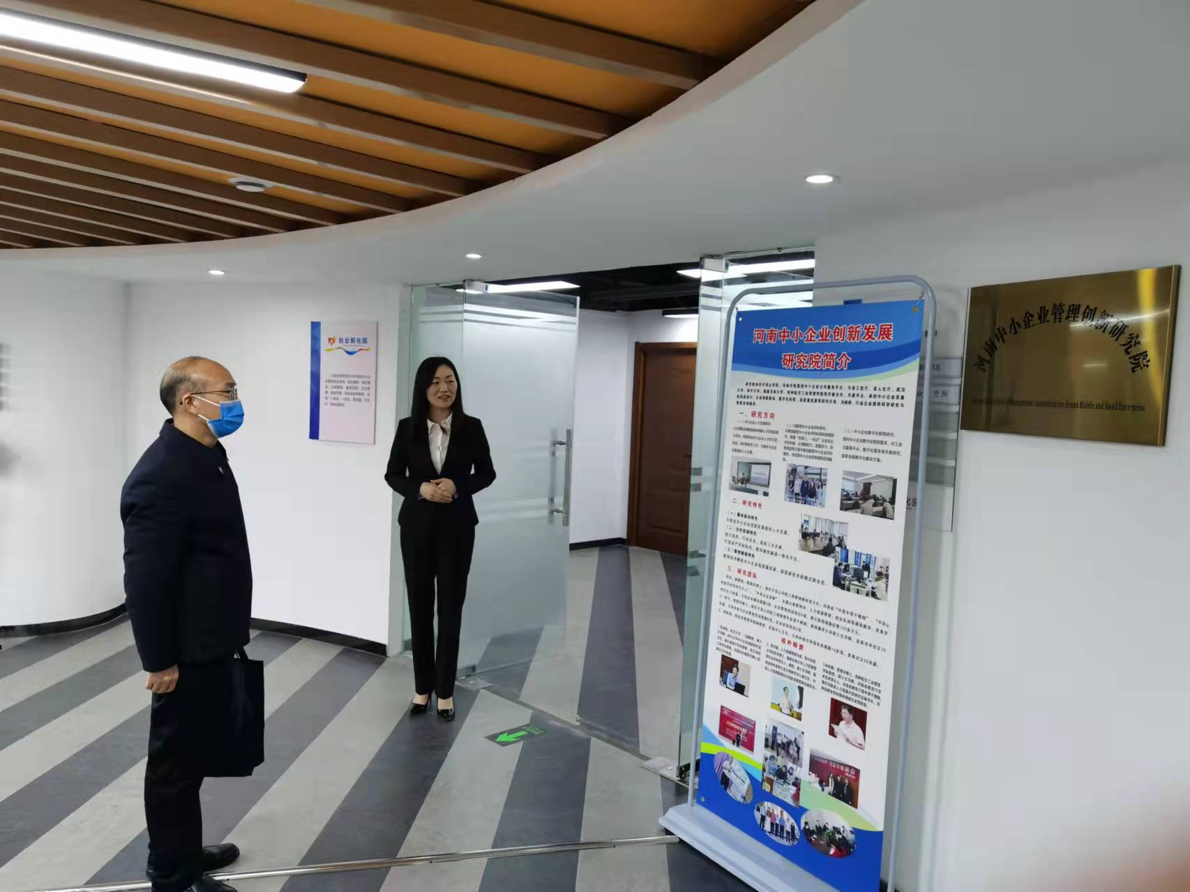 2022年3月16日下午,beat365中文官网经理张振江,工商管理教研室贺杰、李宁对河南省中小企业公共服务平台平顶山中业示范平台进行考察交流。