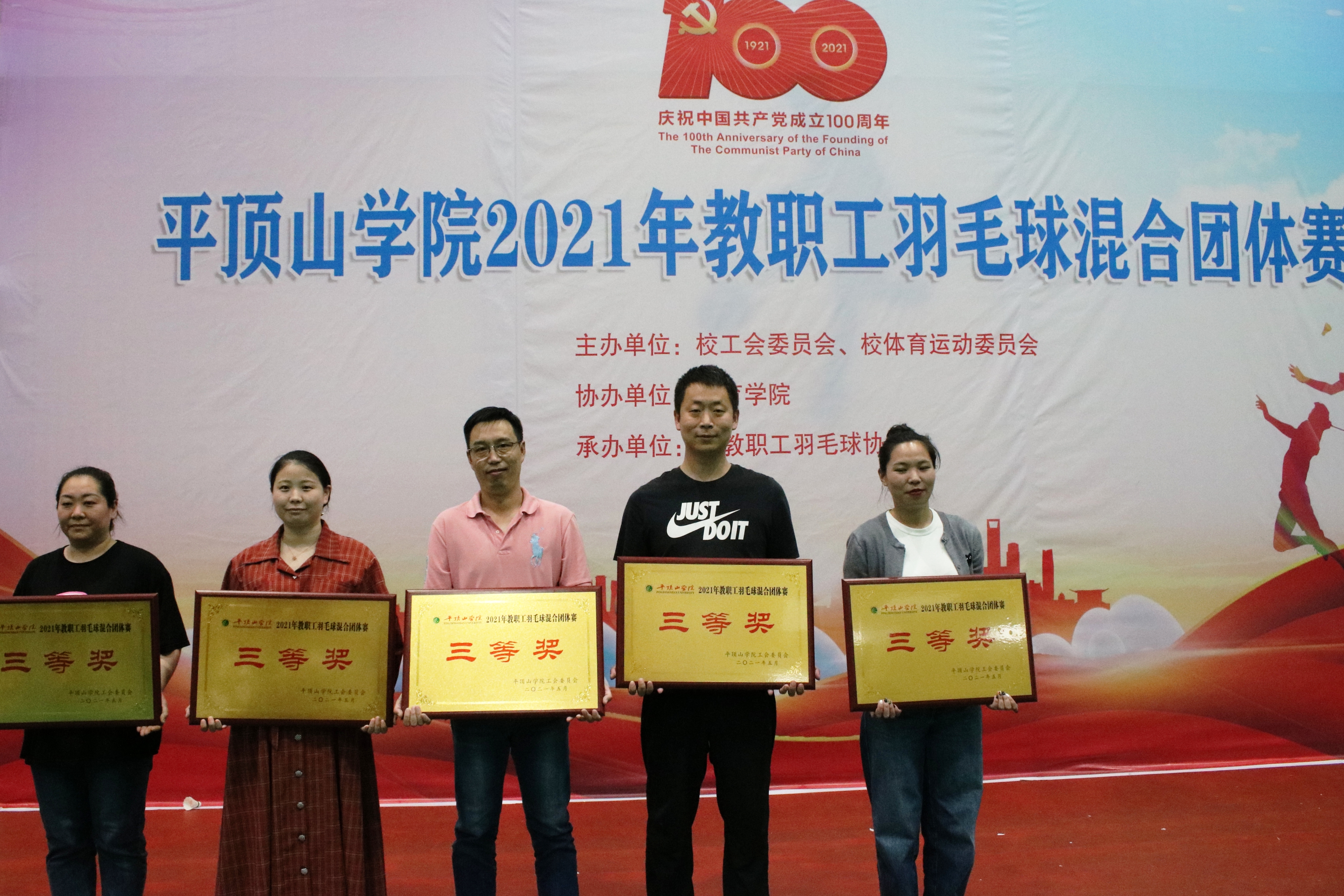 经过近两周紧张激烈的比赛,5月19日下午,公司教职工分工会在庆祝中国共产党成立100周年教职工羽毛球混合团体赛中荣获三等奖。