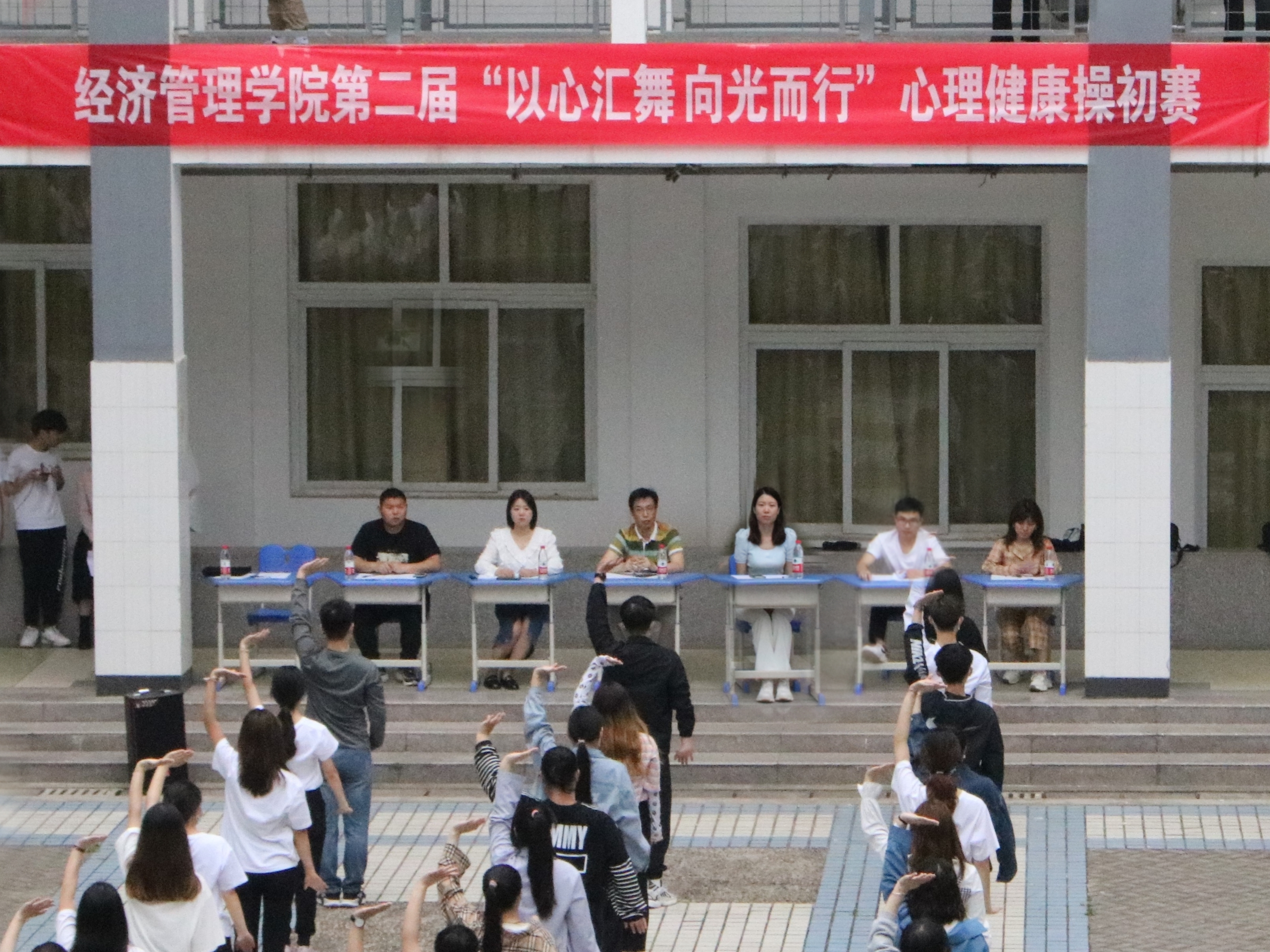 为深入贯彻落实习近平新时代中国特色社会主义思想和十九大精神,进一步做好老员工心理健康教育工作,提高老员工心理素质,传播心理健康正能量,beat365中文官网结合院系实际,于5月13日在二号教学楼组织开展了第二届“以心汇舞,向光而行”老员工心理健康操初赛,beat365中文官网相关负责同志、辅导员,及全体非毕业班在校生参加本次比赛。
