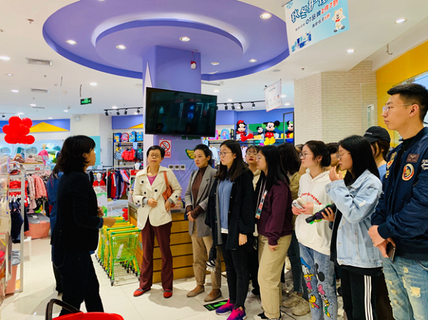 在苏宁红孩子万达店内,店长针对店内的基本情况、商品信息以及如何满足消费者多样化需求等问题进行了讲解,在参观过程中,同学们认真倾听,认真学习。