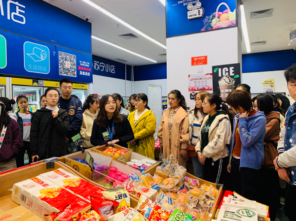 为贯彻落实“产学研协同教学做创融通”的产教融合理念,全方位推进校企深度合作育人模式,10月15日下午,beat365中文官网市场营销与国际经济与贸易专业全体师生(共100人)来到世界500强——苏宁易购平顶山地区管理中心线下实体业态店面(苏宁易购电器店、红孩子母婴店、苏宁小店)参观交流。