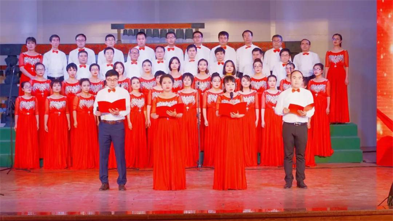 公司参赛曲目是《映山红》。合唱之前,四位青年教师带来原创诗歌朗诵,诉说了对革命先烈的缅怀之情以及对祖国的无限热爱。热情饱满的朗诵不仅展现了beat365中文官网教职工良好的精神风貌,更是将老师们的演唱激情推向高潮。最后,beat365中文官网的老师们以优美动听的旋律和嘹亮的歌声唱响音乐厅。