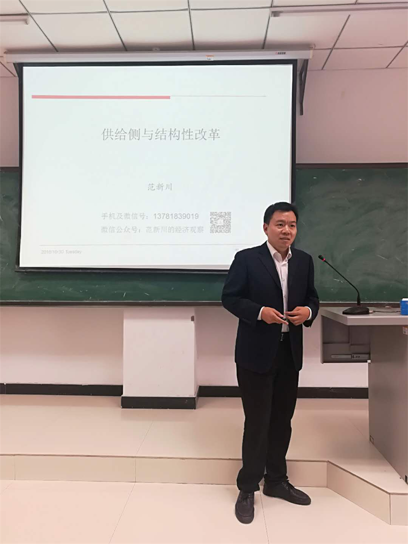 范教授的报告题目为“供给侧与结构性改革”。范教授从供给侧改革的背景、供给侧的内涵、供给侧结构性改革的重要意义、改革的现状、改革的方向与规划等几个方面展开了生动而详细的论述。报告中运用了大量的经济学理论和现实案例,援引了大量的经济数据,知识量、信息量极大,且有很多自己的新观点,使老师和同学们对于供给侧改革有了全面和深刻的理解和认知,也启发了思考,令与会人员都感到受益匪浅!