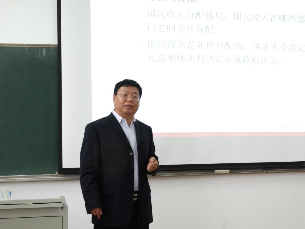 9月18日下午,应经济与管理公司邀请,河南师范大学商公司经理、硕士生导师任太增教授一行3人,在1410教室作了一场题为《我国劳动收入份额的现状及演变趋势》的学术报告,经管院总支书记李永新、经理李玉良以及全院教师参加了报告会,报告会由经理李玉良主持。