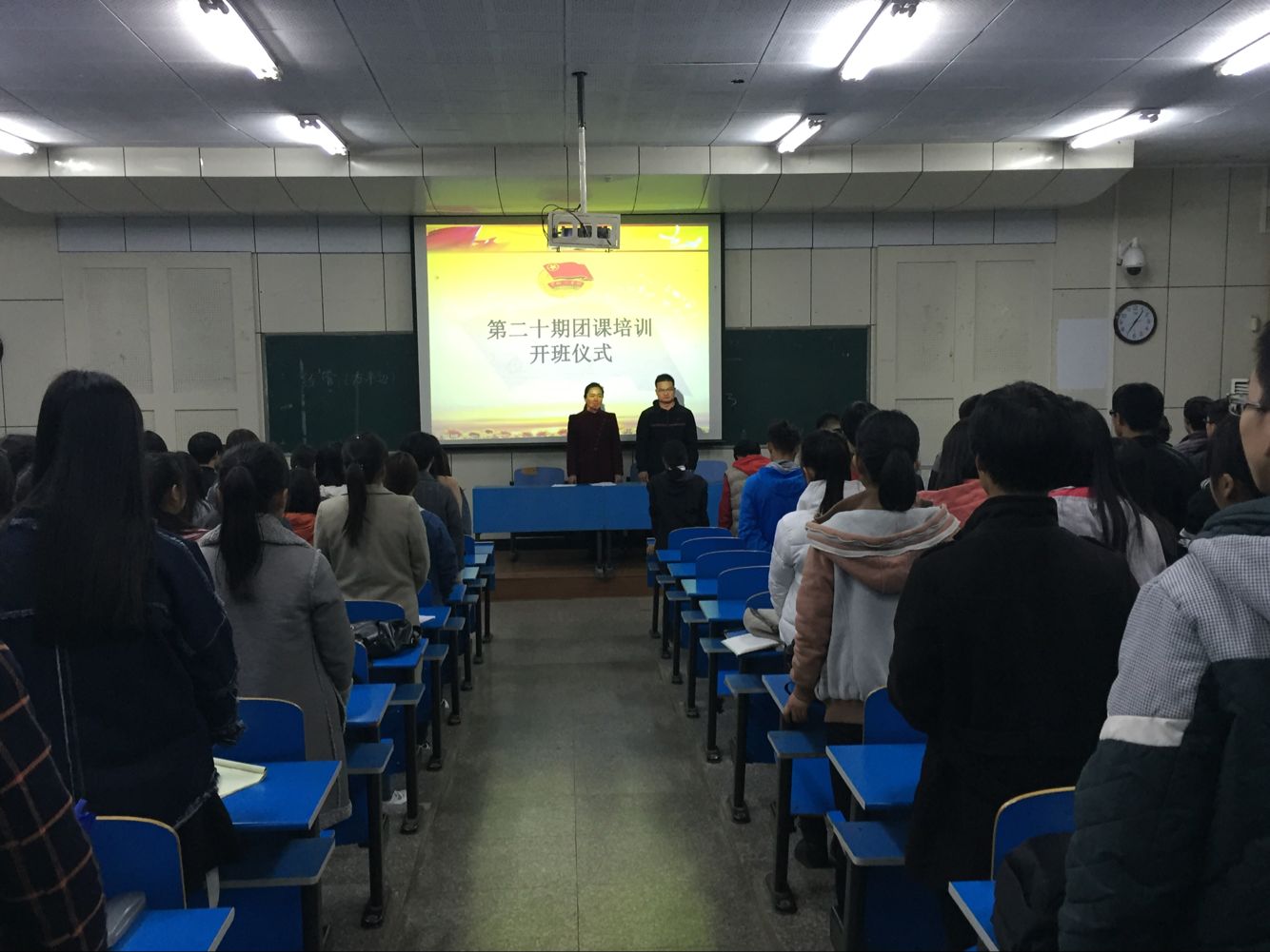 3月23日,beat365中文官网第二十期团课培训开班仪式在2206教室举办,化学与环境工程公司团总支书记冯建和体育公司教师周加兵担任主讲,2015级全体团员参加会议。