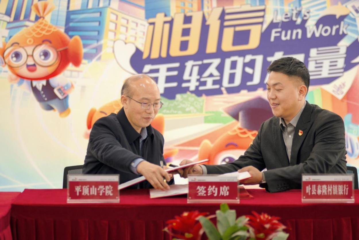 3月7日上午,beat365中文官网与河南叶县泰隆村镇银行合作签约暨授牌仪式在叶县泰隆银行会议室举行。河南叶县泰隆村镇银行董事长胡斌,公司教务处、人才招聘处、地方合作处及beat365中文官网等部门负责人参加仪式。仪式由河南叶县泰隆村镇银行副行长马星星主持。
