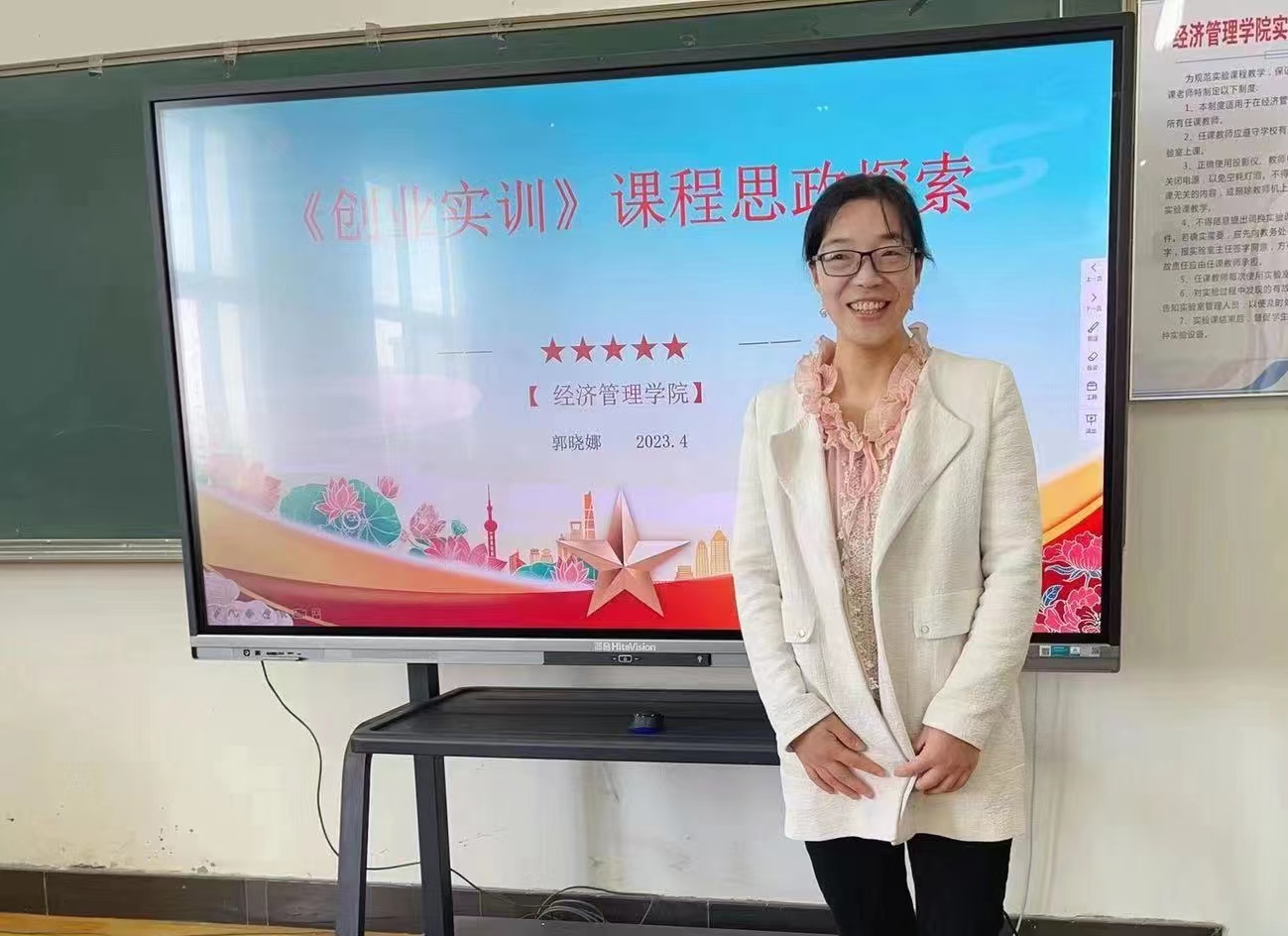 由公司张振江教授主持的《创业实训》课程获批河南省2022年本科高校课程思政样板课程;郭晓娜老师主持的《创业实训》课程获批公司2022年度校级重点课程思政示范课。作为《创业实训》课程教学团队的重要一员,郭晓娜老师代表课程教学团队分享了《创业实训》课程思政建设的过程。