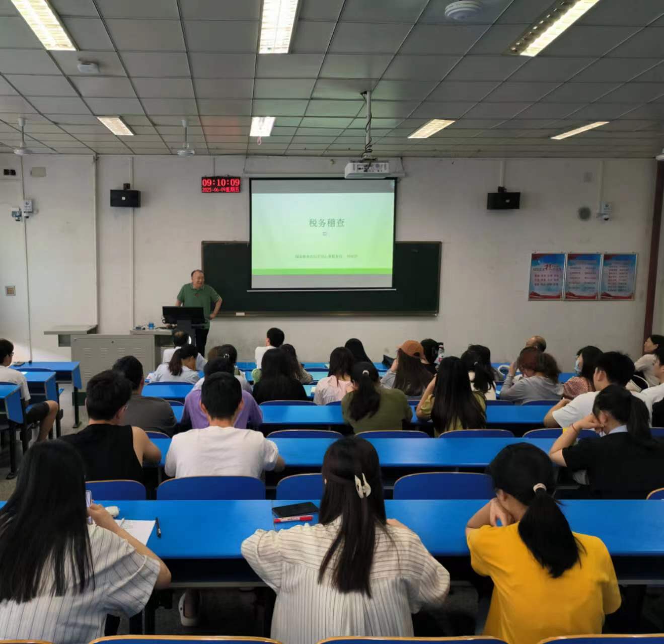 为进一步强化校地校税合作,提升应用型会计人才培养质量,2023年6月9日上午,国家税务总局平顶山市税务局四级高级主办刘双合应邀来校作纳税稽查专题报告。报告会在1206教室举行,经理张振江,会计学专业部分骨干教师及2020级会计学专业员工参加了报告会。报告会由会计学教研室主任刘军英主持。