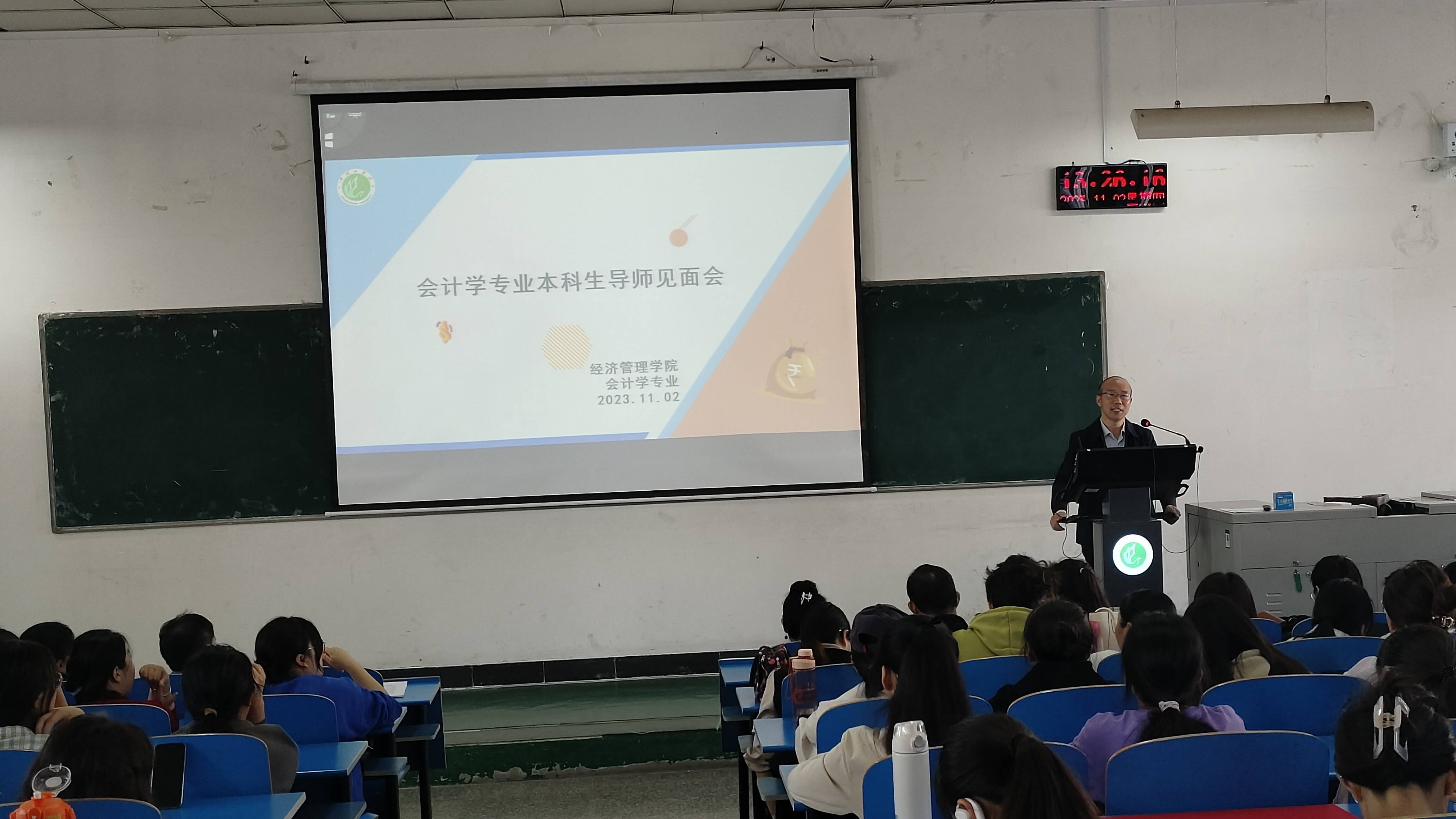 刘军英还介绍了导师的职责和员工的组织管理思想,并宣读了2023级会计学各班的导师分配情况。