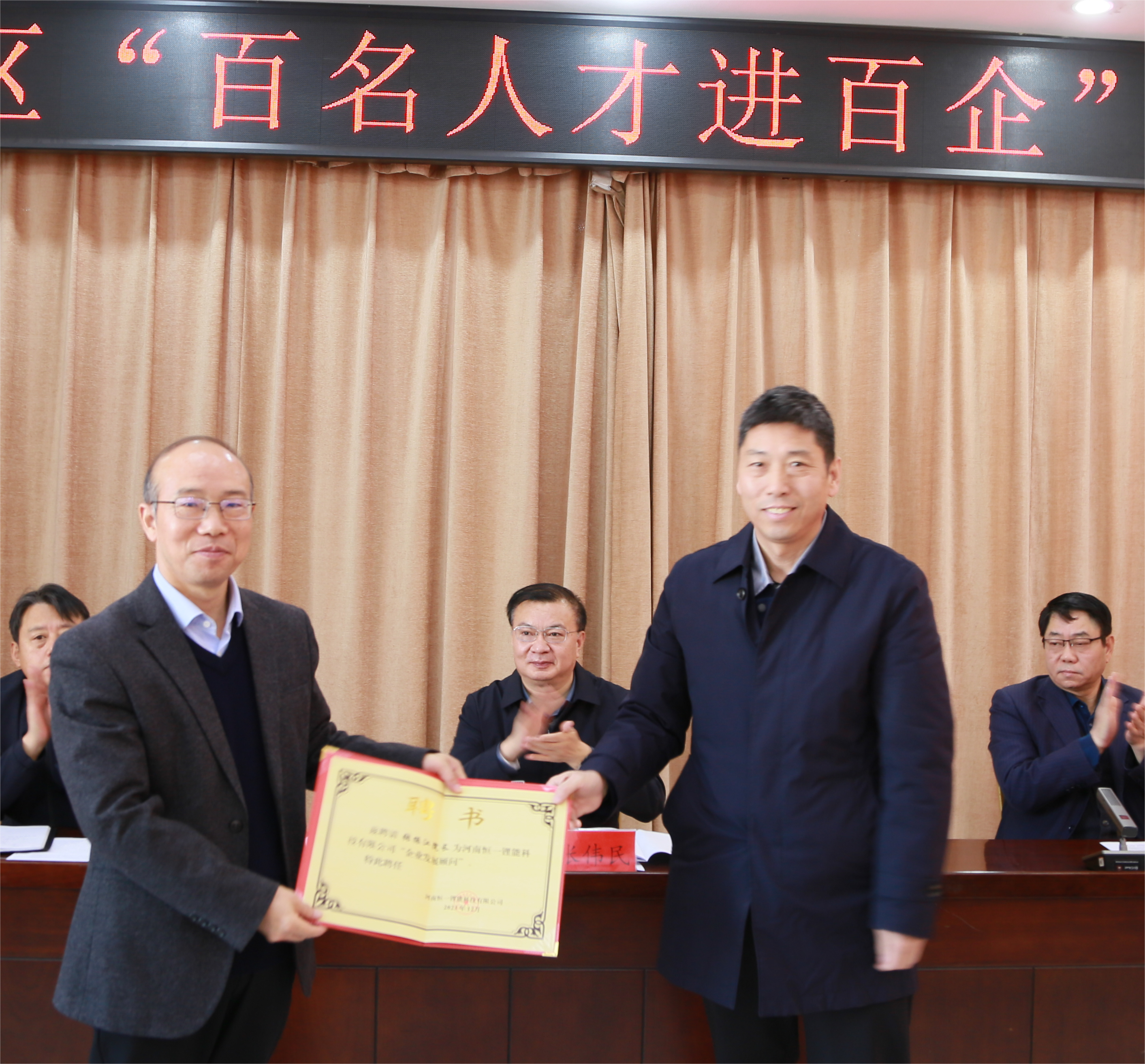 张振江、贺杰等作为“百名人才进百企”首批助企代表发言,阶段性的总结经验、展示成果、共话未来。会上,河南恒一锂能科技有限公司向公司经理张振江颁发“企业发展顾问”聘书。