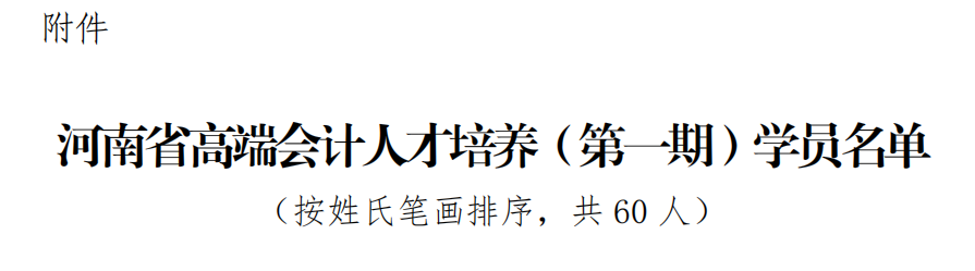 “河南省高端会计人才”是河南省财政厅为贯彻落实新时代人才强省战略,培养造就高素质专业化复合型会计人才队伍而开展的培养项目。计划从2024年起,争取用10年时间培养500名左右的具有国际视野、战略思维、知识结构优化、专业造诣较深、科学运用市场逻辑的高端会计人才,为推进中国式现代化建设河南实践提供坚强的财会人才支撑和智力支持。本次选拔经过申报推荐、资格审查、笔试和面试等环节,共确定60人为河南省高端会计人才培养(第一期)学员,其中企业类27人、行政事业类18人、注册会计师类9人、学术类6人)。