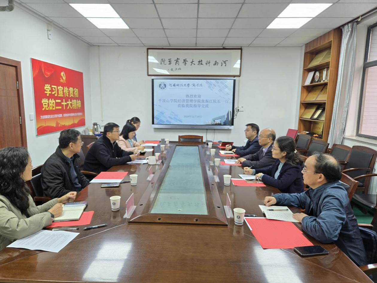 张振江结合公司办学特色介绍了公司在团队建设、专业建设、人才培养、服务地方经济等方面的主要做法。他表示,河南科技大学商公司团队建设优势突出、专业建设特色鲜明、人才培养成果显著。希望双方加强交流、合作共赢,在探索高质量发展的道路上共同奋进。