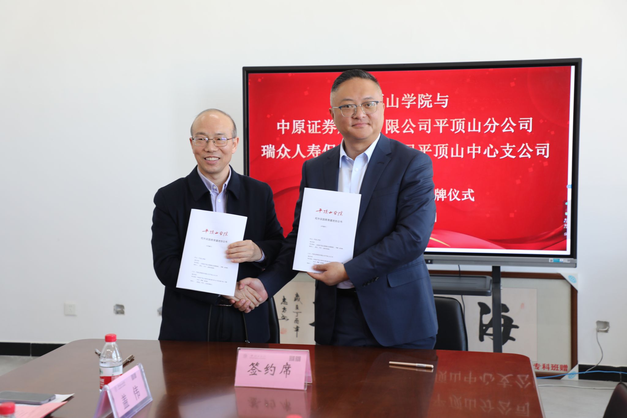 2025年3月20日下午2点,公司与中原证券股份有限公司平顶山分公司、瑞众人寿保险有限公司平顶山中心支公司战略合作签约暨授牌仪式在行知楼RB422举行。此次活动标志着公司在深化校地、校企合作,促进教育链、人才链与产业链有机衔接方面迈出了重要一步。