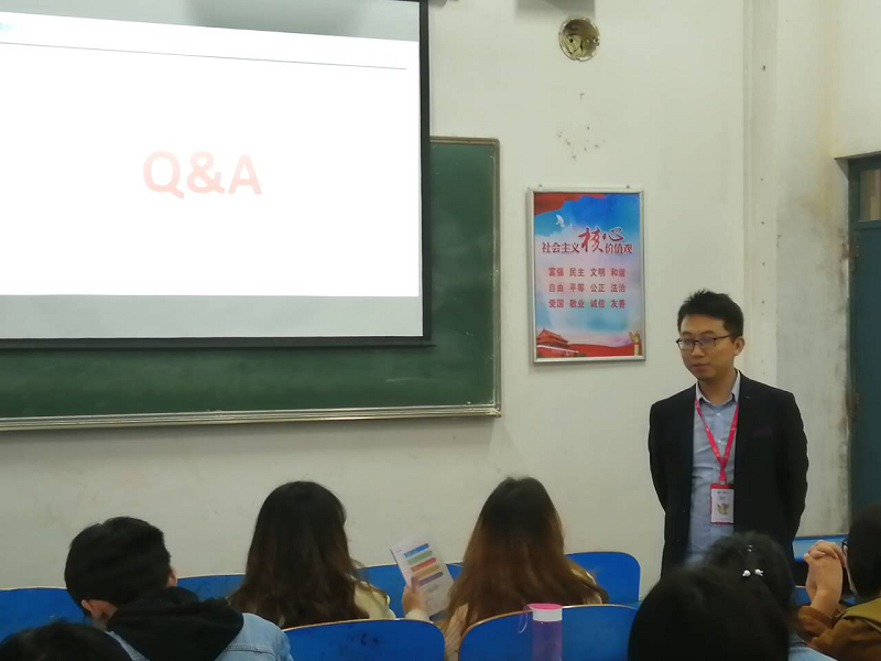 最后赵经理通过互动解疑,和同学交流未来规划,帮助同学解决问题,积极鼓励优秀毕业生踊跃加入广慧,成为广慧新生代,并对优秀毕业生进行了面试。