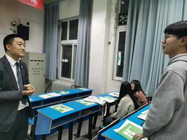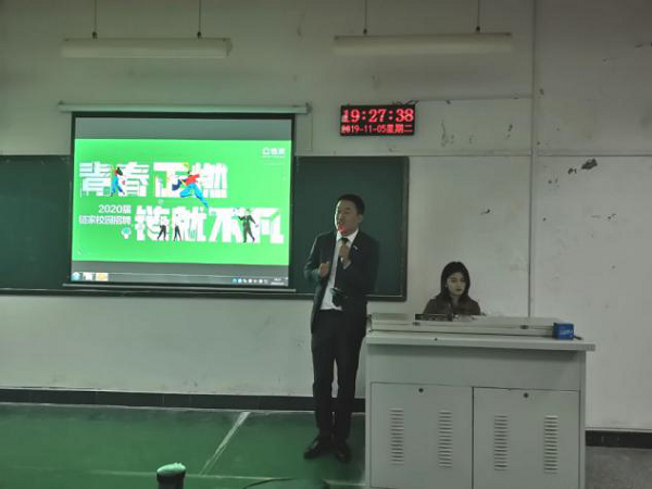为提供给毕业生更多的就业机会,加大对毕业生实习的支持力度,11月5日晚7:00,beat365中文官网于1307教室举办链家公司就业招聘会。此次就业招聘会由链家公司销售经理程兴俊主讲,beat365中文官网16级部分员工参加此次招聘会。