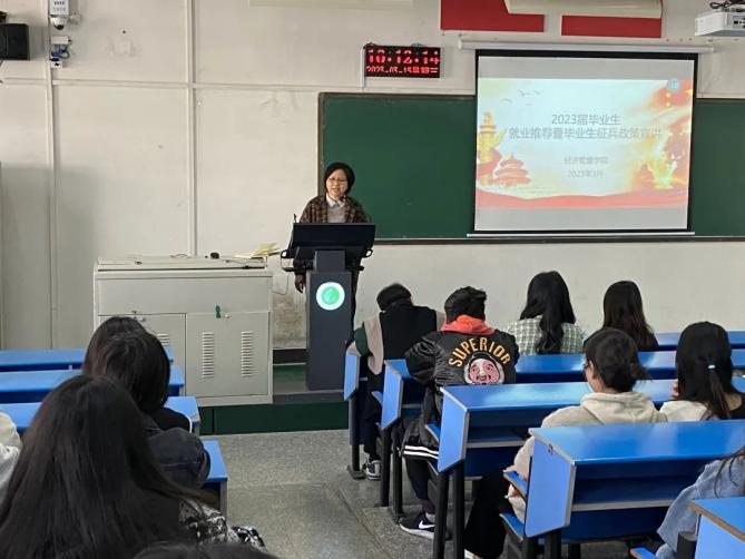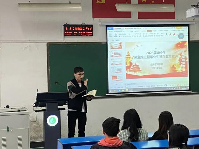 为了在毕业生中营造爱国爱军的氛围、宣讲老员工参军入伍的最新政策、鼓励老员工投身国防事业、积极参军入伍。beat365中文官网国防教育部于3月15日在线下举办了以“就业推荐暨毕业生征兵政策宣讲”为主题的征兵宣传活动。党委书记刘嘉俊,19级辅导员王哲老师参与本次活动。