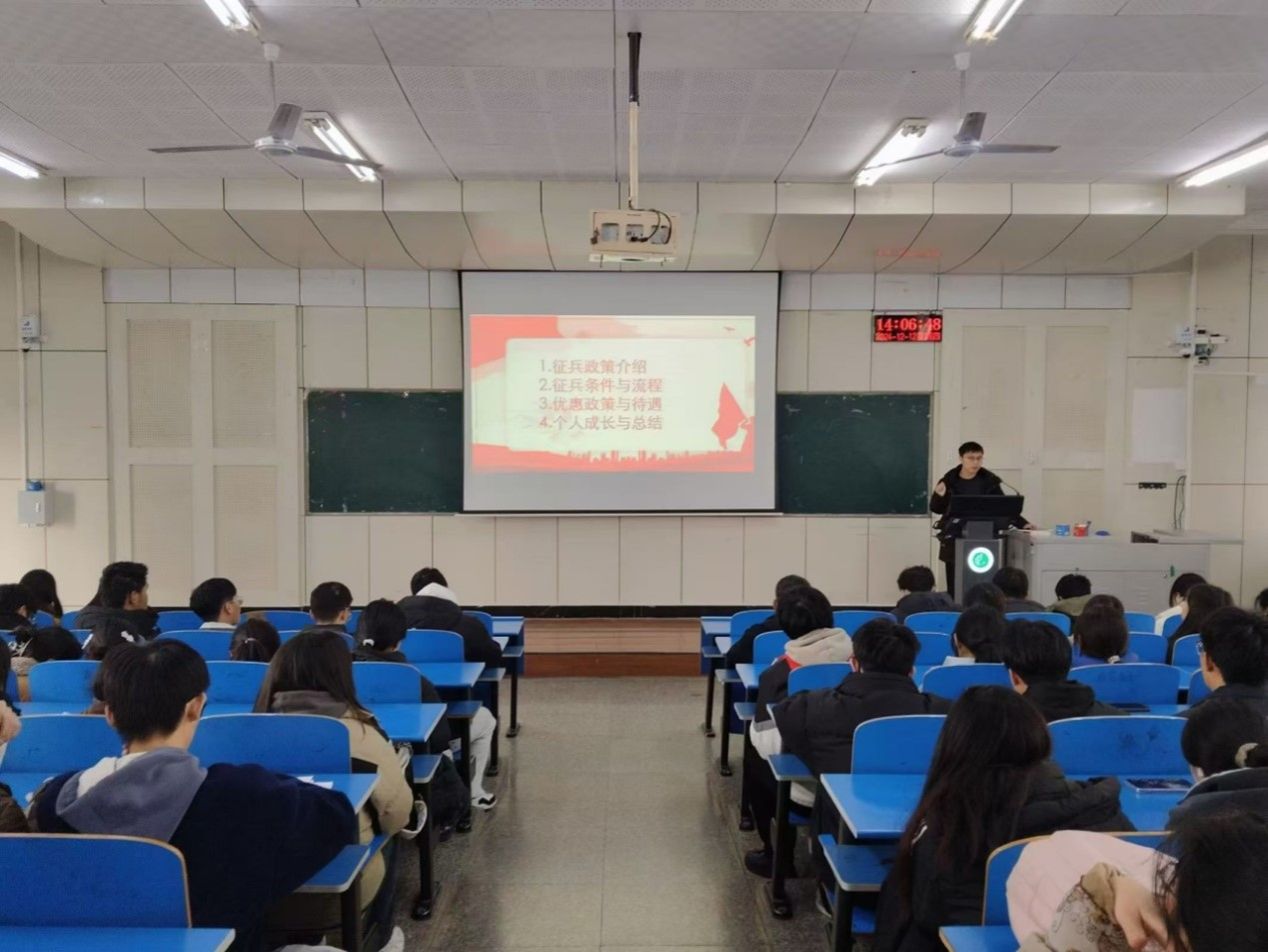 王哲为同学们详细阐述了入伍的条件与流程,并深入介绍了当今就业环境的情况以及参军的一些良好政策,强调新时代青年肩负着保家卫国的神圣使命,动员同学们积极响应国家号召,踊跃报名参军,为国防建设贡献自己的青春,将个人理想融入国防事业,在军队中砥砺青春、实现价值,为国家的繁荣富强贡献自己的青春力量。