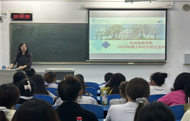 宣讲会中,李云蕾围绕河南工业大学经济贸易公司的基本情况、招生专业、员工毕业去向、研究生奖助体系、公司读书环境、考试说明和报考咨询等七个方面进行详细介绍。她为同学们提供了实用考研建议,鼓励大家坚定考研信心、保持良好心态,提醒同学们关注关键时间节点并提前准备好相关报名材料,确保报考过程顺利。同时,李云蕾强调在选择目标院校和专业时要结合自身实力与兴趣,深入研究院校信息,并指导同学们如何筛选备考资料、甄别有效信息。在互动交流环节,李书华就如何选择合适的导师、备考各阶段的复习重点与策略以及考试中压力应对方法等同学们关心的问题进行了专业且贴心的回答,现场气氛热烈。