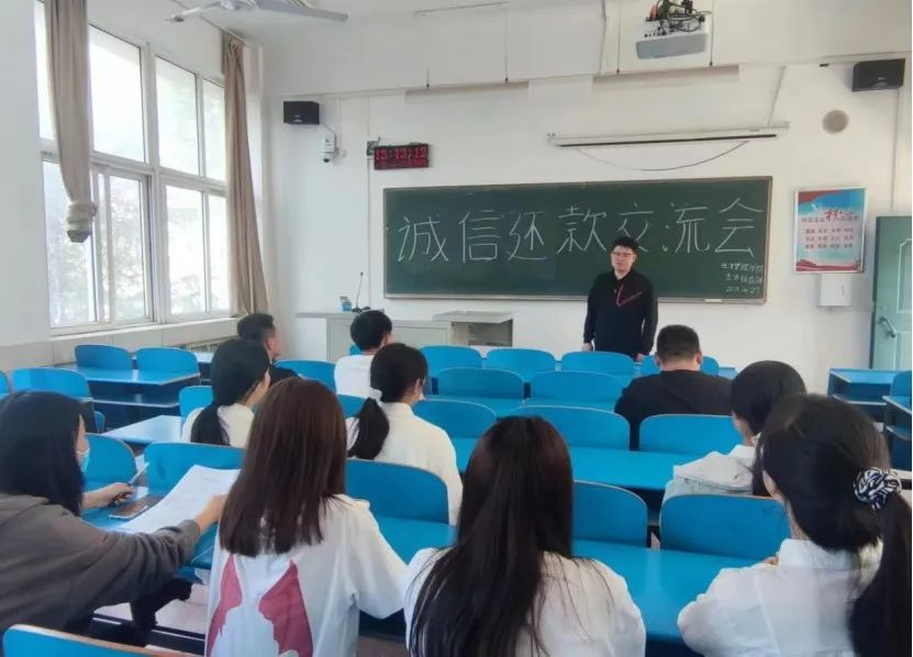 为切实做好2023届助学贷款毕业生诚信还贷工作,普及征信、金融等相关知识,加强老员工诚信感恩教育,强化资助育人工作效果。beat365中文官网于4月27日下午在2212教室开展毕业生诚信还贷座谈会,由贾续辉老师担任主讲,beat365中文官网助学贷款毕业生参加了本次座谈会。