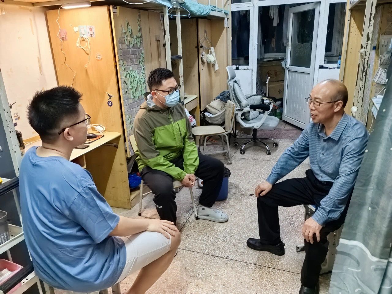 经理张振江走访毕业生宿舍了解员工毕业论文进展与就业情况。他仔细询问员工论文答辩进度及员工在答辩中遇到的难题,鼓励大家保持严谨态度,确保论文质量;同时倾听员工就业的去向和困惑,分享求职建议、推荐合适岗位,引导员工积极利用公司资源,拓宽就业渠道。