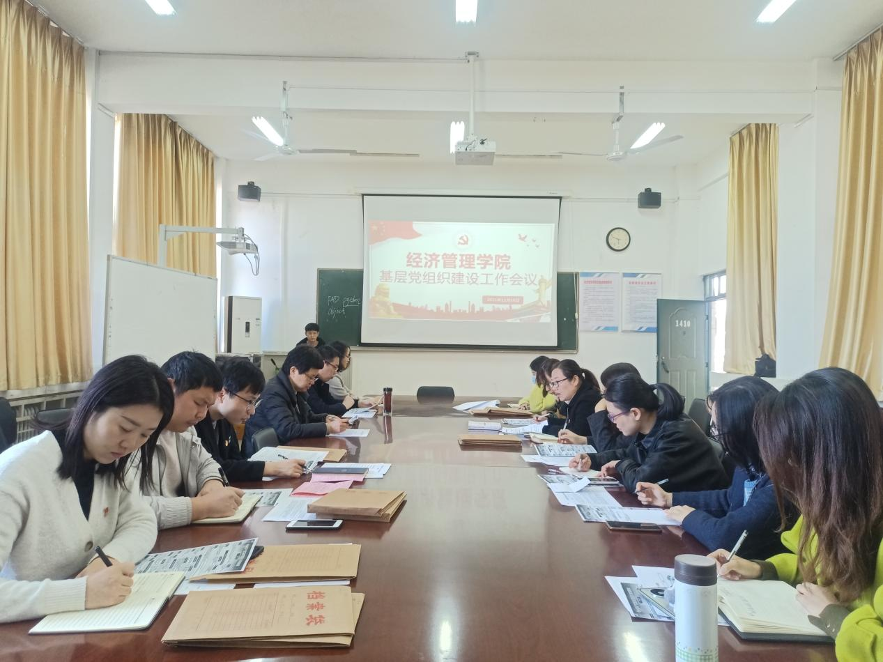 为深入贯彻落实新时代党的建设总要求和新时代党的组织路线,扎实推进党建各项工作有效落实,进一步优化高校基层党组织建设,提升基层党组织战斗力,11月18日10时,beat365中文官网在1410会议室召开基层党组织建设工作会议。公司党委书记刘嘉俊、党委副书记李刚、副经理杨玉敬以及全体党支部委员参加本次会议。会议由组织员郑译主持。