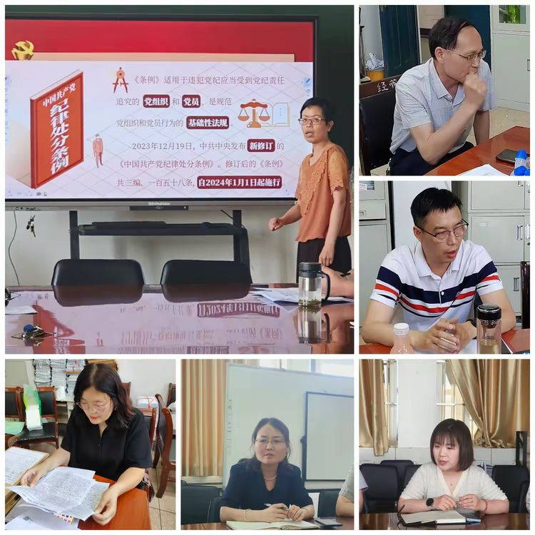会议由王芳同志领学。全体党员通过学习《中国共产党纪律处分条例》(以下简称《条例》)原文、学习习近平总书记关于党的纪律建设的重要论述、观看警示教育片《持续发力纵深推进》、上党课,紧扣党纪学习教育目标,多形式、高质量地开展《条例》学习。教工第一党支部书记王兴娟以头雁标准认真学习《条例》,先学一步、学深一层,认真总结学习经验感想,并给全体党员上了一节《学党纪知党纪明党纪守党纪》主题党课,给全体党员分享了自己的学习体会,阐述了《条例》新修订的内容,并立足党员岗位实际带领大家对部分《条例》内容进行了重点学习。