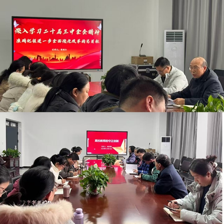 随后,beat365中文官网经理张振江以“深入学习党的二十届三中全会精神,准确把握进一步全面深化改革的总目标”为主题,beat365中文官网副经理、教工第二支部书记杨玉敬以“高校教师的守正创新”为主题,分别为教工支部党员上了一节专题党课。我们要深刻理解守正创新是党在新时代治国理政的重要思想方法,是进一步全面深化改革必须牢牢把握、始终坚守的重大原则。我们要深刻领会守正创新是个人发展的立命之本,作为高校教师,要坚守教育初心,将个人理想融入民族复兴的伟大征程。