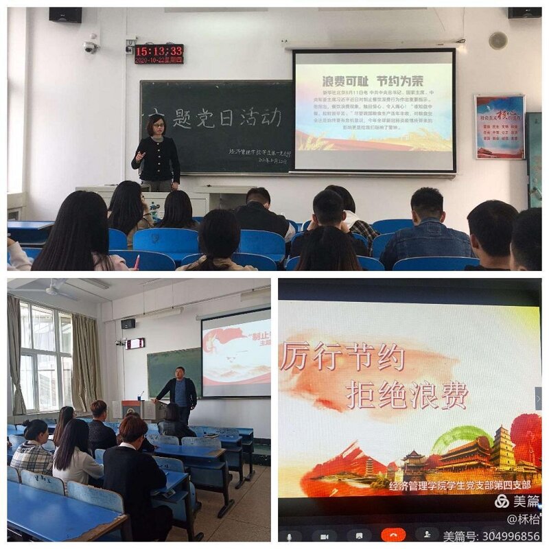beat365中文官网员工第二党支部支部书记彭翠珍和第二支部组织委员王哲一同带领全体党员认识了当今社会上的粮食浪费问题。支部书记彭翠珍表示,希望全体党员能够在校园生活中以身作则,减少浪费,厉行节约。