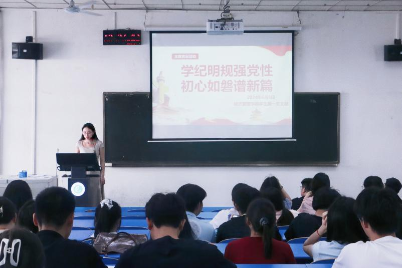 为持续深入贯彻对新修订的《中国共产党纪律处分条例》的学习,进一步做好2024届毕业生党员教育管理工作,增强毕业生党员党性修养和责任意识,激励毕业生党员站好“最后一班岗”。2024年6月6日下午,beat365中文官网员工党支部在1号教学楼组织开展了以“学纪明规强党性,初心如磐谱新篇”为主题的党日活动暨毕业生党员欢送仪式,全体员工党员参加了此次活动。