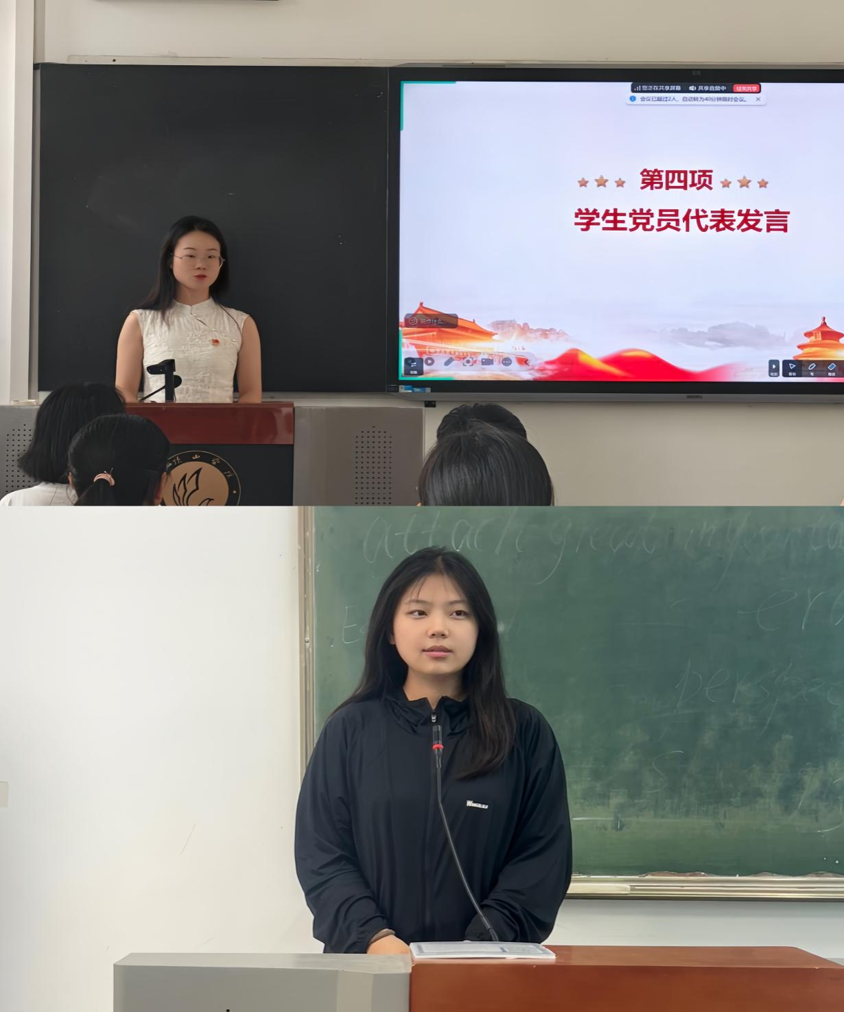 随后,员工党员代表李烨同志和薛淑怡同志分别发言。她们指出,作为员工党员,我们应该深入学习贯彻习近平文化思想和中央八项规定精神。奋斗是青春的底色,更是推动社会进步的蓬勃力量,青年党员当时刻保持勤俭节约、务实进取的精神风貌。青春力量是宝贵的,我们青年应在个人成长中严格要求自己,以积极向上的态度推动文化的传承与创新,努力成为有理想、有道德、有文化、有纪律的新时代青年。